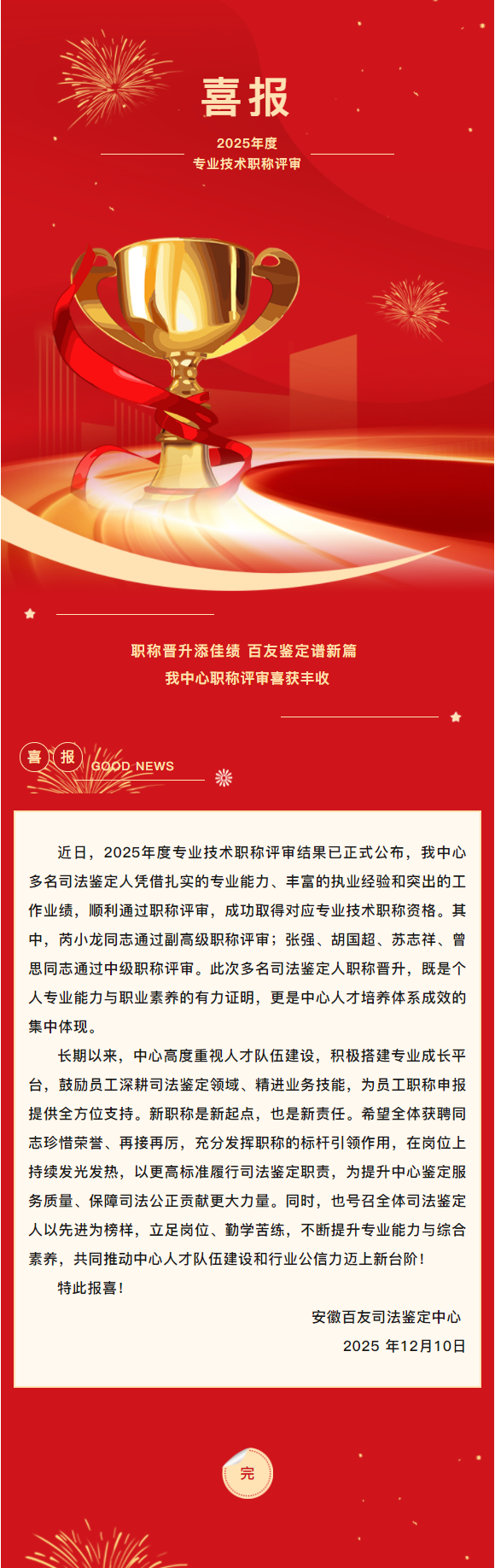 职称晋升添佳绩 百友鉴定谱新篇——我中心职称评审喜获丰收