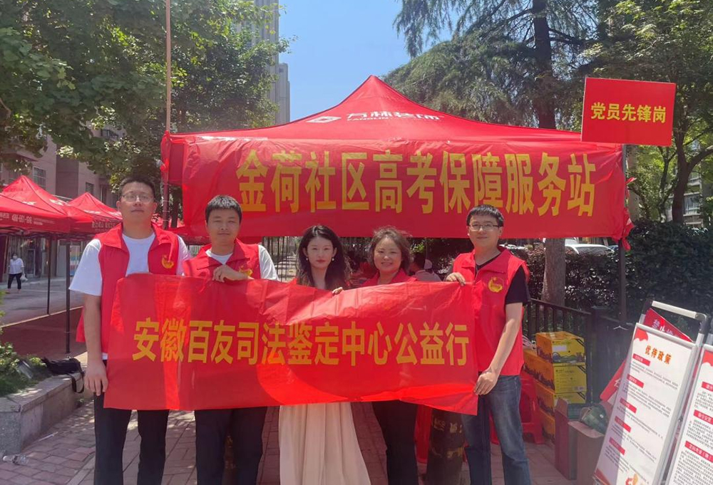情暖莘莘学子,志愿服务同行。6月7日,2023年高考拉开大幕,为全力护航高考,助力学子圆梦,在天鹅湖商务区党委、金荷社区党委的带领下,安徽百友司法鉴定中心党支部组织党员干部及员工代表组建志愿者服务队,开展了爱心助力高考志愿服务活动。